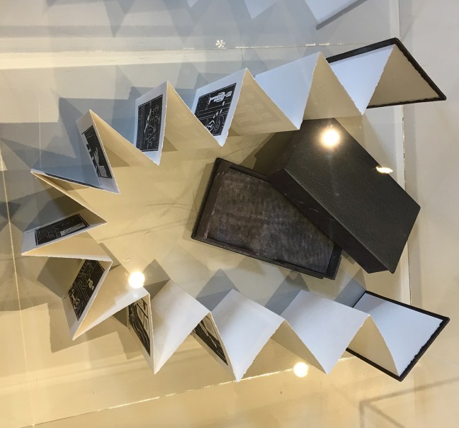 Les linogravures illustrées dans ce livre en accordéon, qui appartient actuellement au fonds de la Bibliothèque Saint Geneviève à Paris, a d’abord été imprimé par Annika sur un une presse Vandercook au Center for Book Arts à New York. Elles ont ensuite été numérisées et réimprimées en jet d’encre sur du papier fait main.